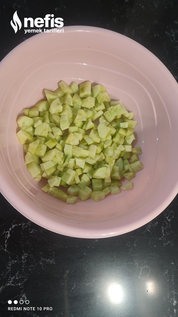 1. Salatalıkları küp küp doğrayalım bir kaba alalım.