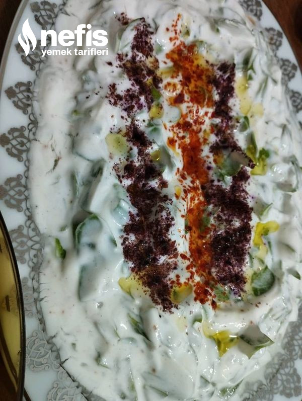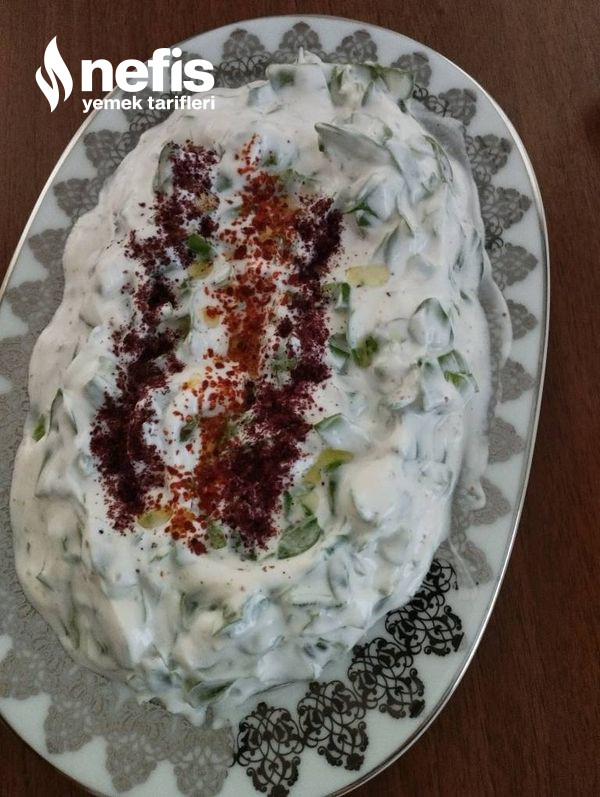 1. Geniş bi karıştırma kabına evvel yoğurdu sonra da semiz otu ve baharatları eklenip harmanlanır. (eğer süzme yoğurt kullanacaksanız yoğurdu evvel su ile biraz açıp daha sonra kalan gereçleri eklemelisiniz. )