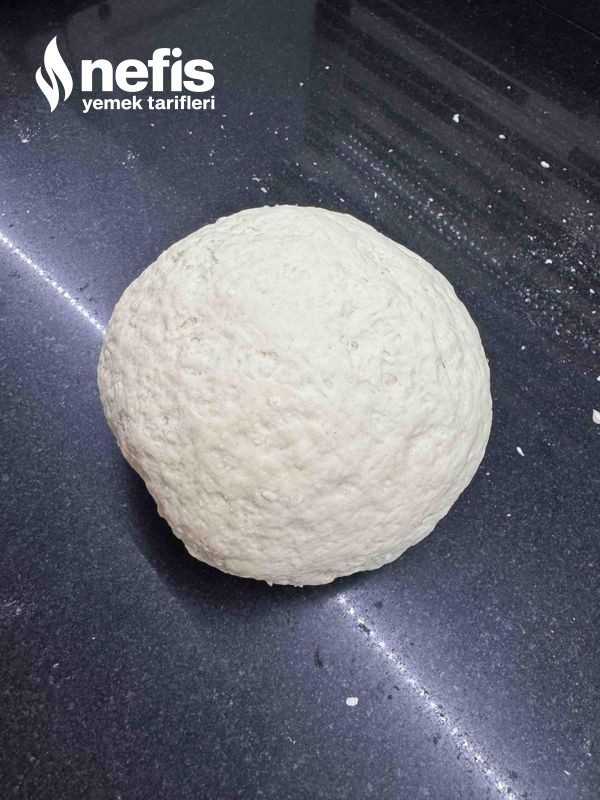 - İlk olarak hamur için kaba un su tuz ekleyip hamuru hazırlıyoruz.