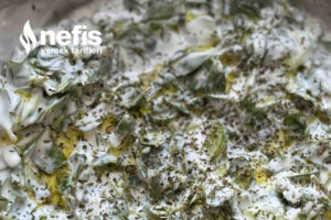 - Daha sonrasında yoğurdu su ile açalım, biraz içine sarımsak rendeleyip tuzunu koyalım.