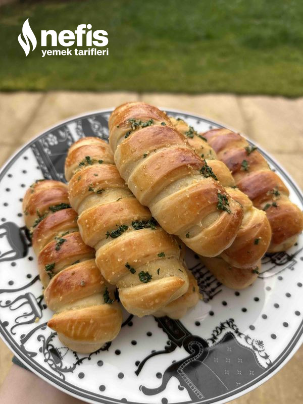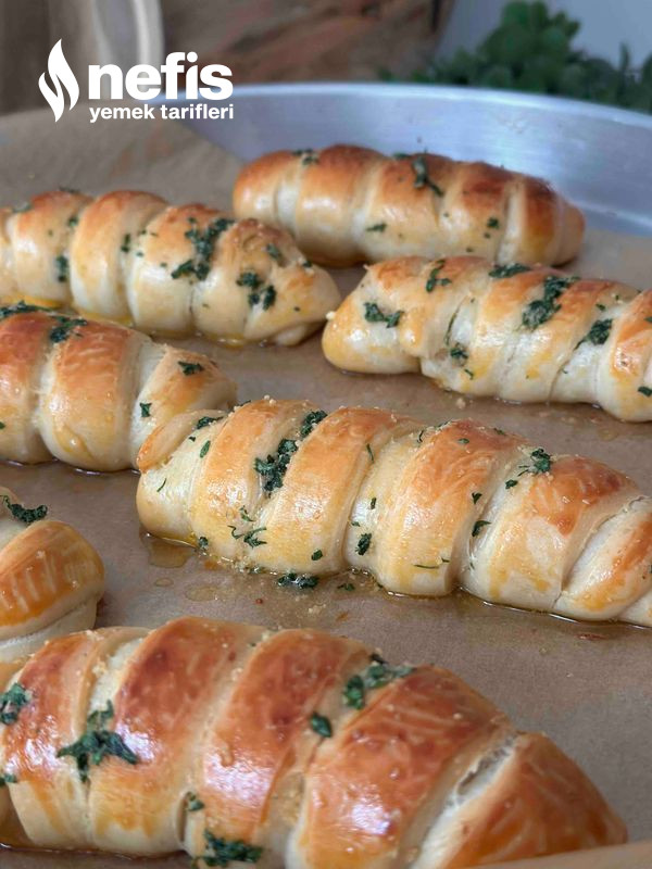 12. Tereyağlı sos için tavaya tereyağını alıp, eritin. 1 adet sarımsak rendeleyin yada sarımsak tozunu dökün. Maydonozu da ekleyip 2 dk daha karıştırın.