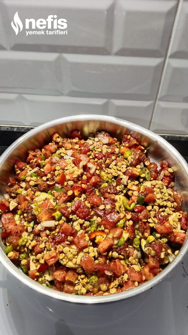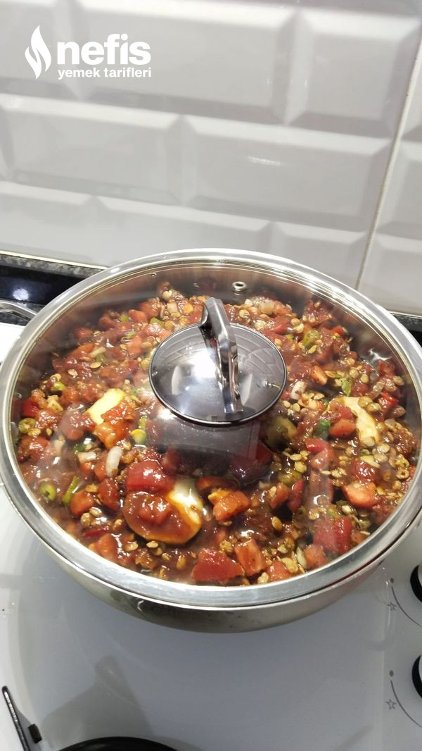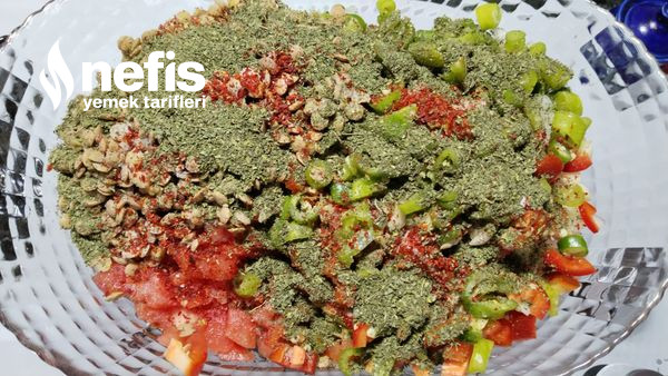3. Yeşil mercimeği yıkayıp birebir kaba alalım. Kuru nane, pulbiber ve tuzu da kaba alıp güzelce karıştıralım.