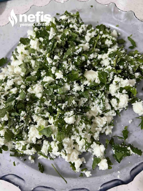 - Maydanozu doğrayıp, peynirle karıştıralım kaseye bir çay bardağı sütü ekleyelim üzerine sıvı yağ ekleyelim.