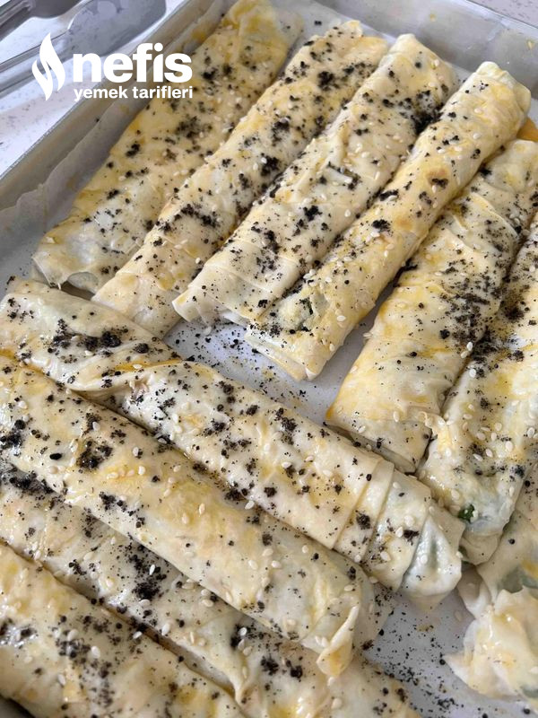 - Bekleyen börekleri tepsiye düzelim yumurta sarısı sürüp, üzerine çörek otu ve susamdan ekleyerek 200 derece altı üzeri kızarana kadar pişirelim afiyet olsun.