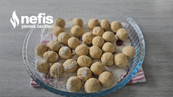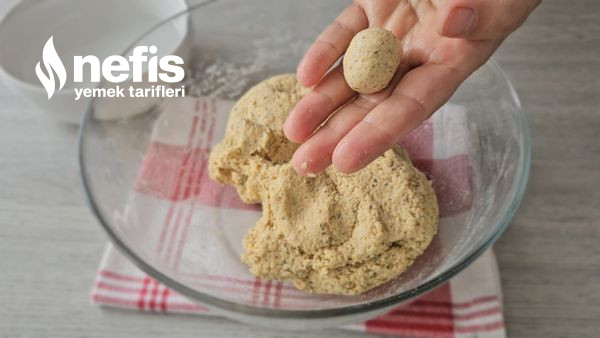 - Hazırladığınız hamurdan fındık büyüklüğünde kesimler koparın ve elinizle yuvarlayarak minik köfteler yapın.