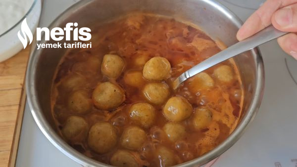 - Sos kaynamaya başladıktan sonra hazırladığınız köfteleri suya ekleyin, yaklaşık 15 dakika orta ateşte köfteler yumuşayana kadar pişirin. Kıvamı koyu olacak