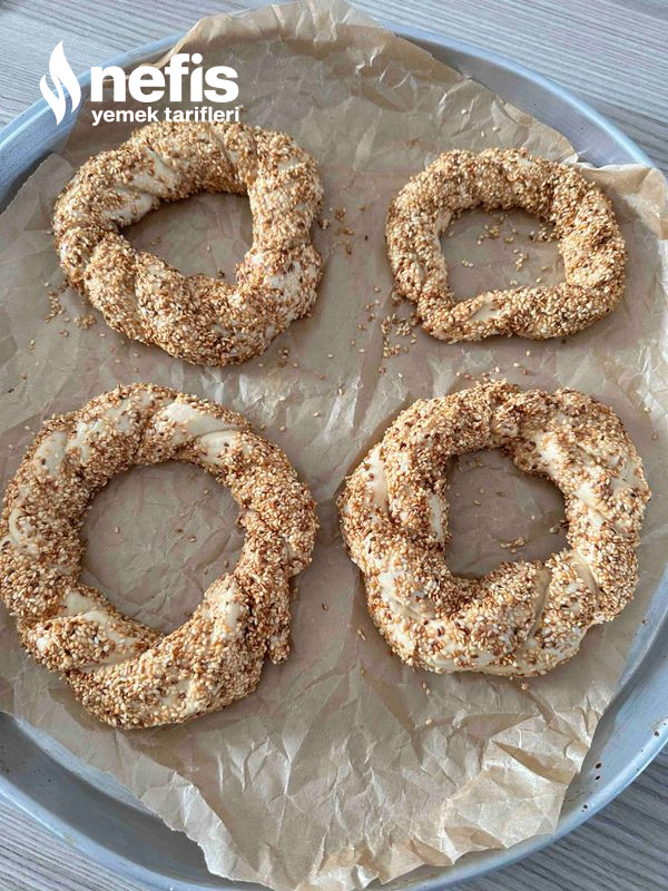 - Simitleri yağlı kağıt serili fırın tepsisine dizin.