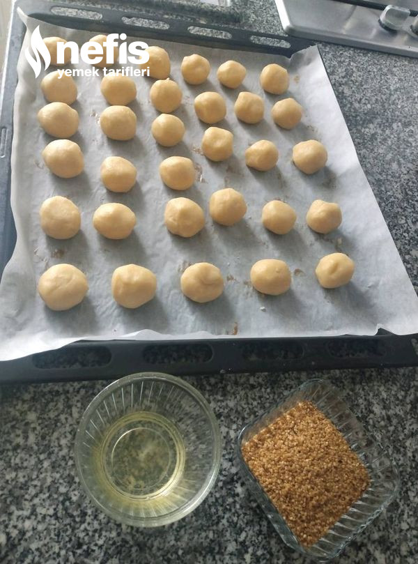 - Yağlı kağıt serdiğimiz tepsiye dizip evvelden ısıtılmış 180 derece fırında üzeri kızarana kadar pişiriyoruz.