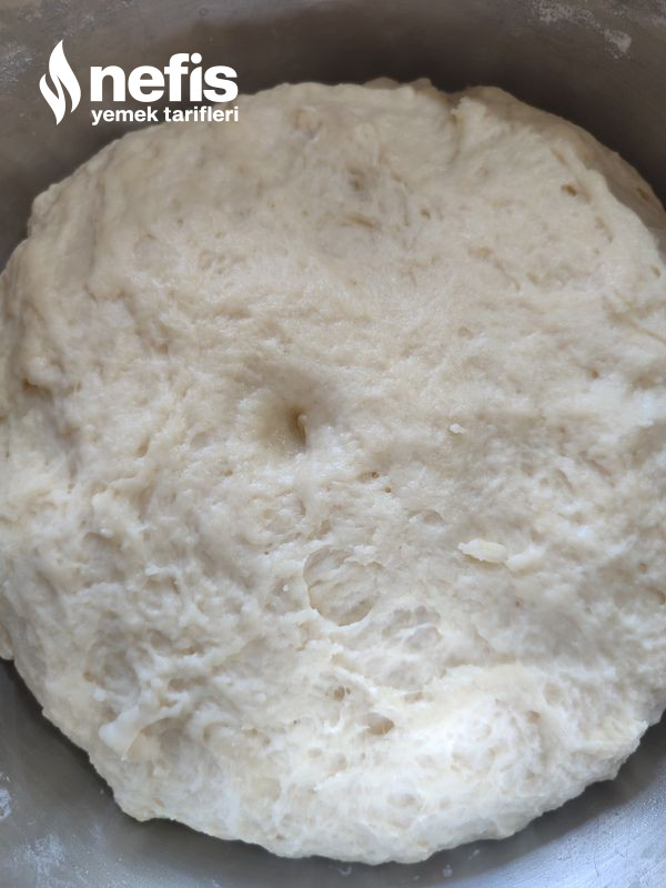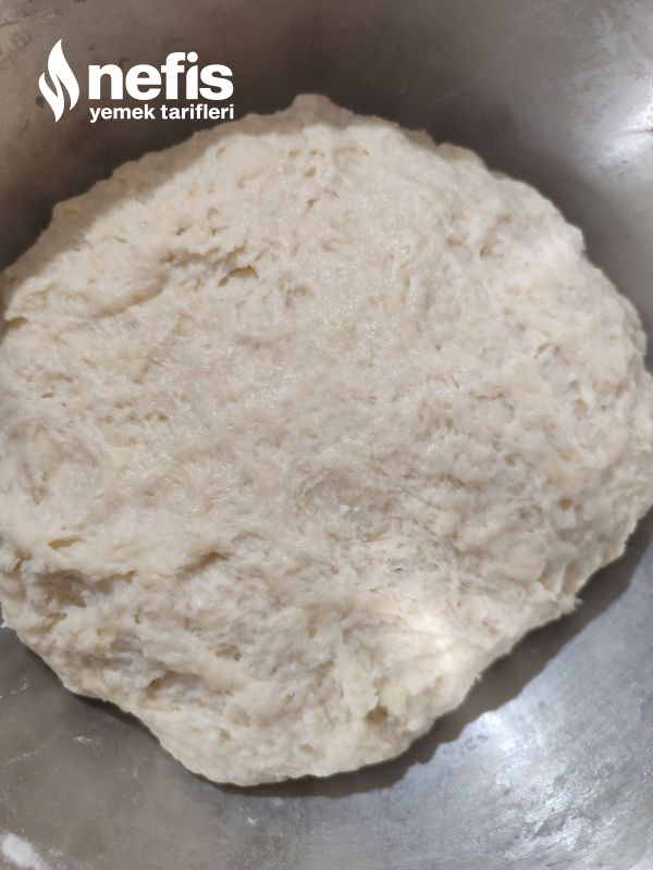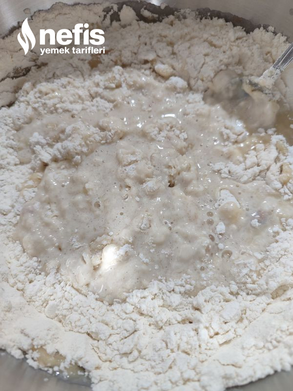 - Ardından sıvı yağ, tuz ve un(kontrollü ekleyin) eklenir ve yumuşak kıvamda hamur yoğrulur. (üstü kapatılarak 1 saat dinlendirilir).