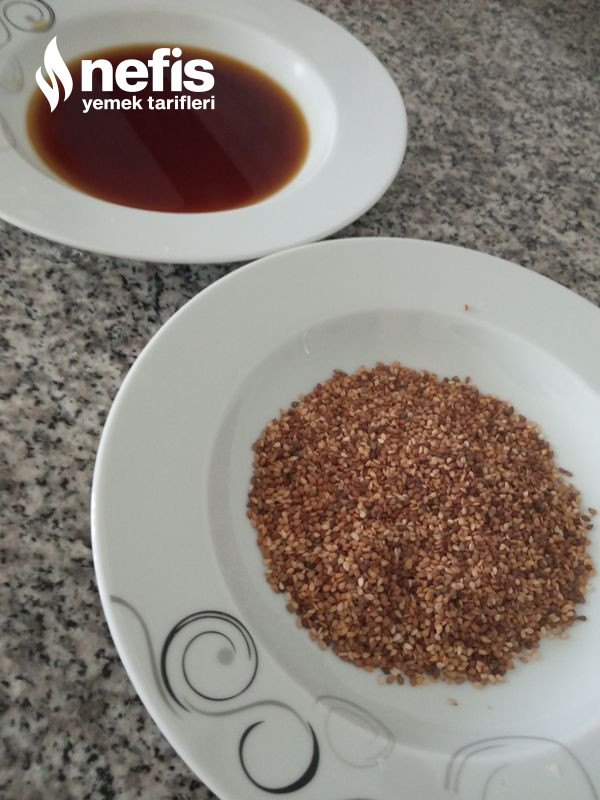 - Pekmez ve suyumuzu karıştırıp başka bir kaba da küncümüzü ekliyoruz.