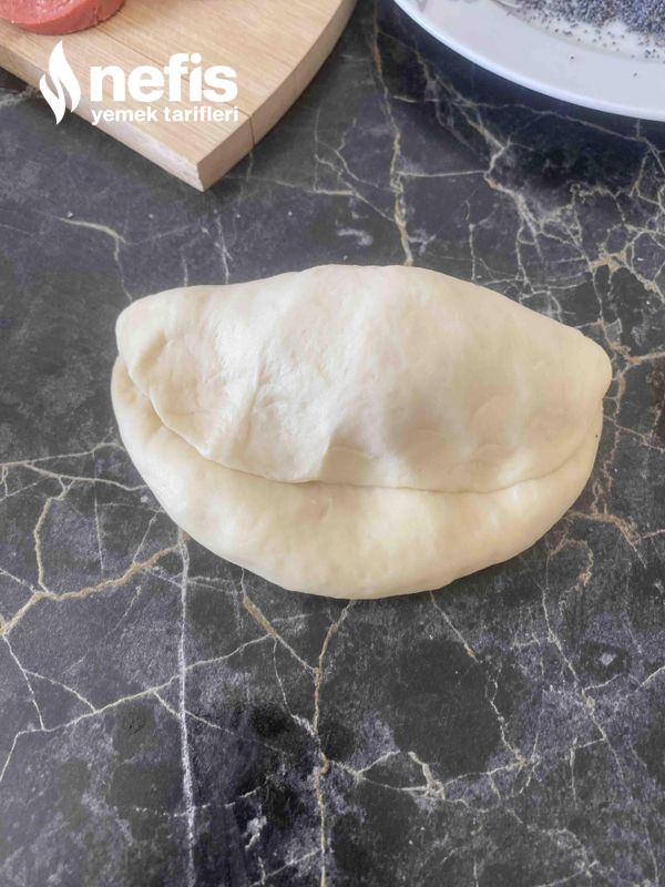 - Bütün hamur bitince ortasına çizik atıp pide biçimini verelim ve sucukları koyalım.