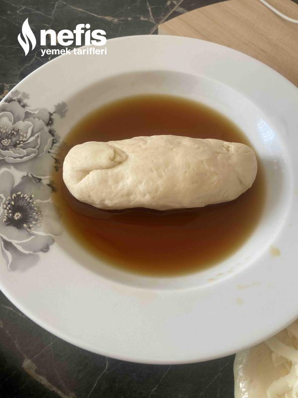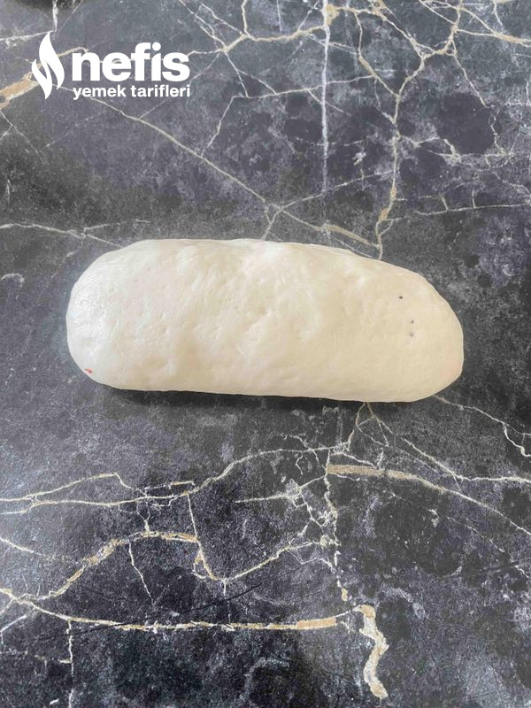 - Öncelikle hamuru tezgaha alalım ve mandalina büyüklüğünde hamur koparalım 8 adet çıkıyor. Hamurları elimiz ile azıcık açıp içine peyniri koyalım ve poğaça katlar üzere katlayıp bir rulo yapalım.