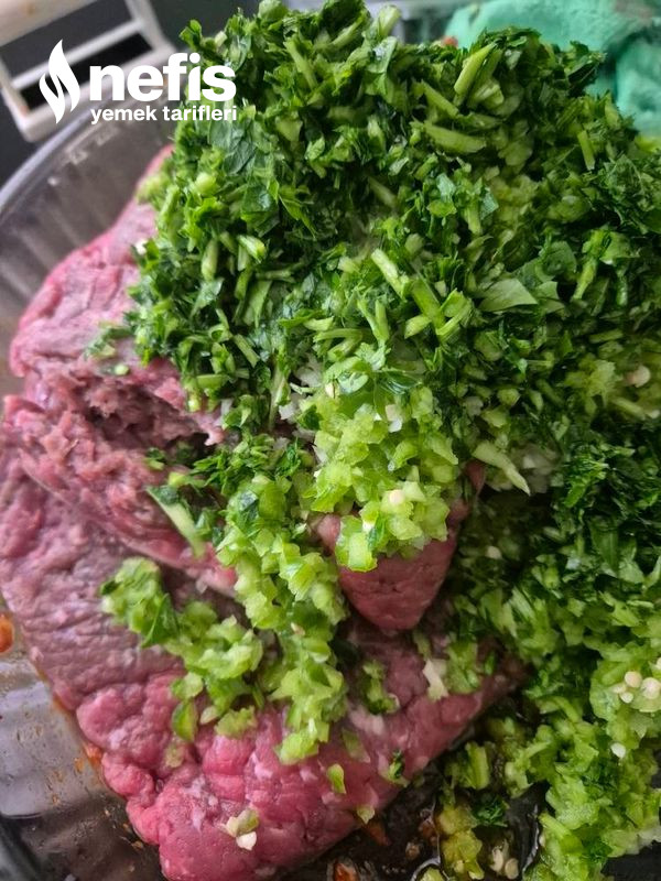 - Et in içerisine maydanoz,5 biberi, soğan ve sarımsaklarida el robotu ile cektim ben (küçükte doğrayabilirsiniz).