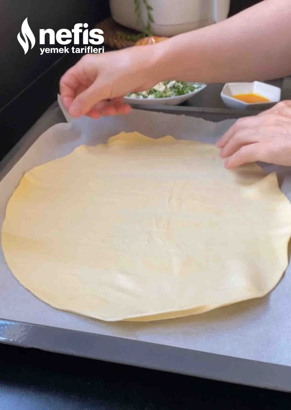 - Milföy hamurunu tepsiye yayalım, üzerine iç harcını serpiştirelim ve öbür milföy hamuruyla da üzerine örtelim.