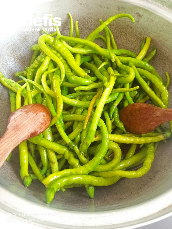 3. Kaynayan suya biberleri ekleyin (hepsi çok gelebilir ben iki seferde yaptım) Fazla ezmeden tahta kaşıkla karıştırarak biberler sararmaya başladığında alın. Çok sararmasını beklemeyin biberleriniz erimesin.