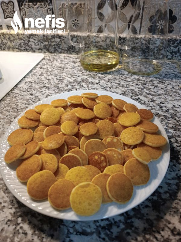 4. Tavaya çok az yağ sürüp tatlı kaşığı ile küçük küçük pankekler yapalım.