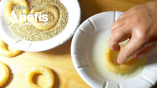 - Geriye kalan bütün hamuru bu formda hazırlayalım. Hamurun hepsini şekillendirdikten sonra öncelikle yumurta akına sonra susama bulayalım ve yağlanmış fırın tepsisine yan yana sıralayalım.