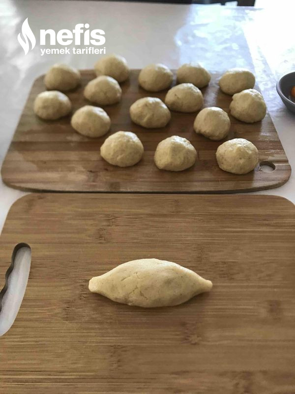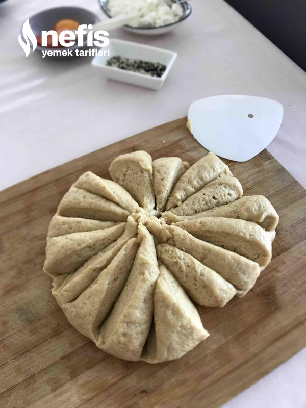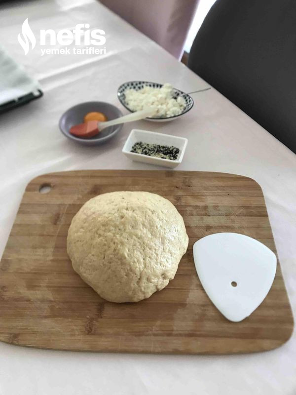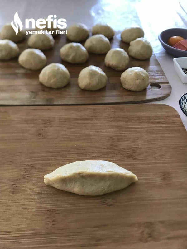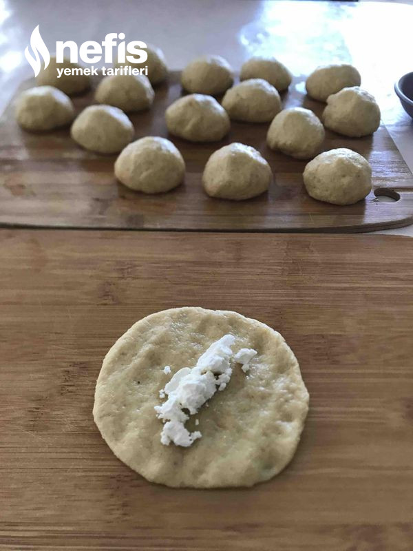 3. Hamur ortalama 16 bezeye ayrılır ve her bir beze, el ile açılıp ortasına peynir konup güzelce kapatılır ve aykırı çevrilip sırayla tepsiye dizilir.