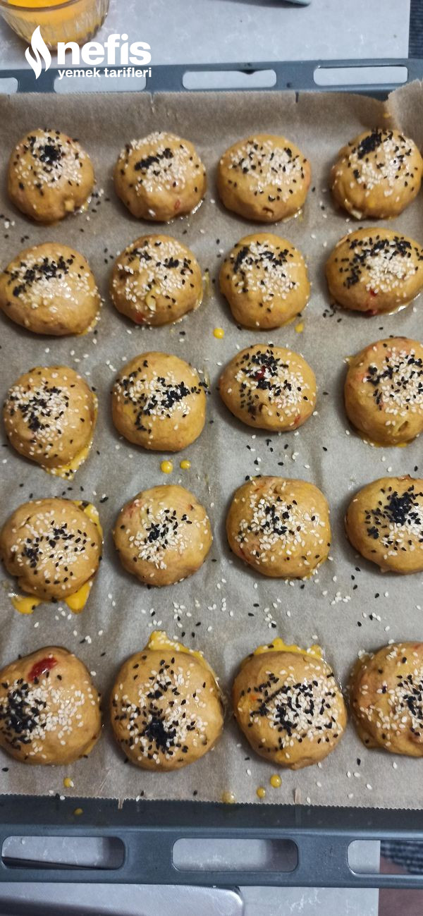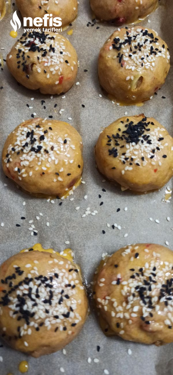 6. Üzerine yumurta sarısı susam ve çörek otu ek edip 180 derece fırında pişirin.