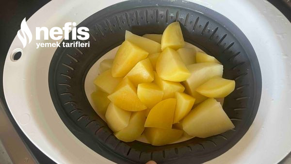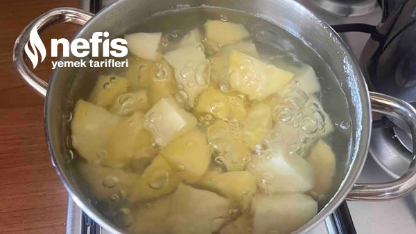 - Patateslerin kabuğunu soyuyor, orta büyüklükte doğrayıp su ve tuz koyduğumuz tencereye alıp haşlıyoruz.