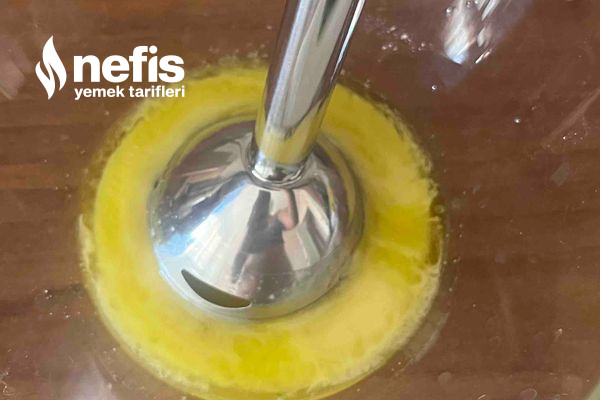- Zeytinyağ, sarımsak ve elma sirkesini çubuk blendrdan geçiriyoruz.
