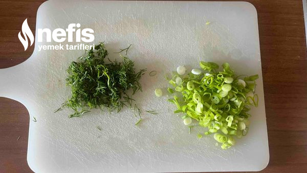 - İnce ince doğradığımız dereotu ve soğanı da ekleyip karıştırıyoruz.