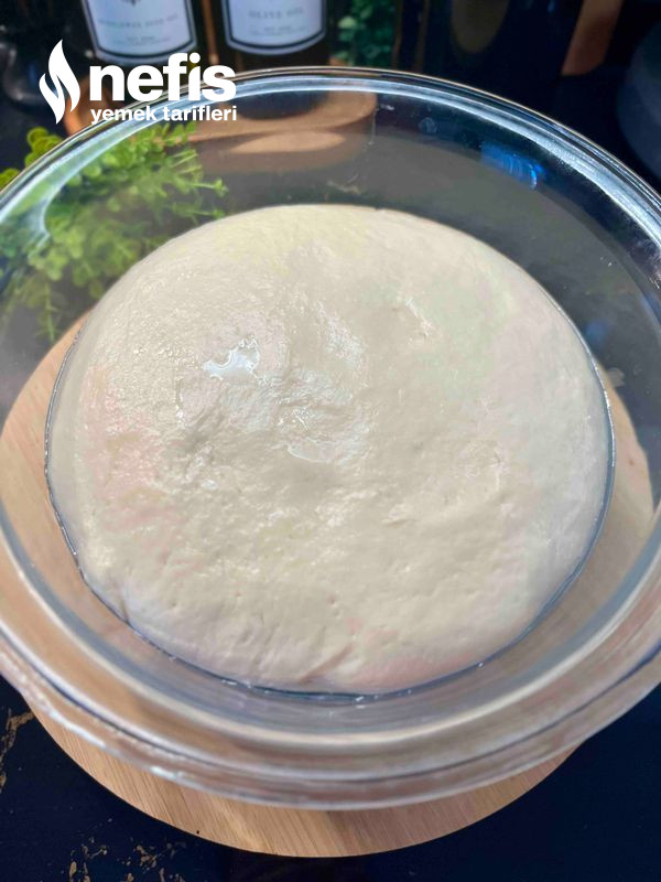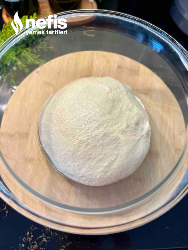 4. Elimizle hamuru toparlayıp üzerini streçleyerek 1 saat mayalanmaya bırakalım.