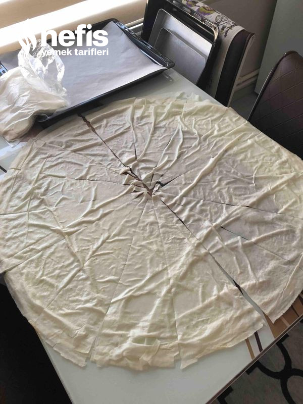 - Tepsiye dizelim tıpkı süreci öbür yufkalarıda yapalım en son üzerlerine kalan sostan sürüp ve üzerine yumurta sarısı sürelim.