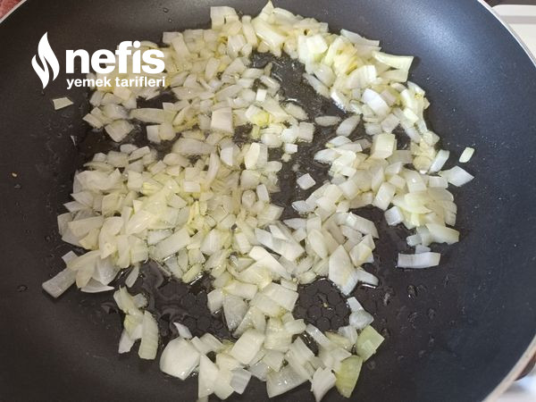2. Diğer taraftan içi için uygun bir tencereye sıvı yağ ekledikten sonra doğramış olduğumuz kuru soğanı ekleyip pembeleşinceye kadar kavuralım.