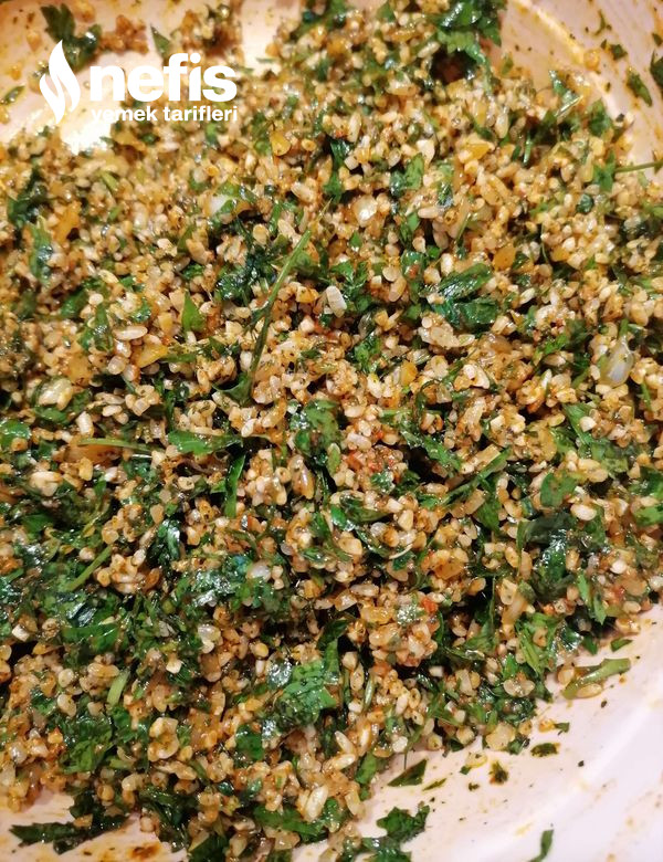 - Maydanozu ince ince doğrayalım. İç harç için kuru soğanı da ince ince doğrayalım.