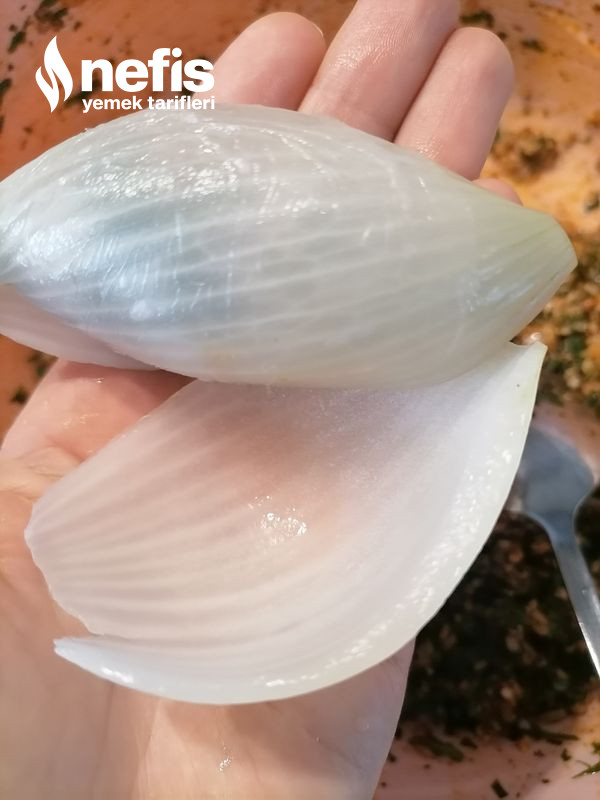 - Haşlanan soğanları yaprak yaprak ayırıp içlerindeki zarları da ayıralım.