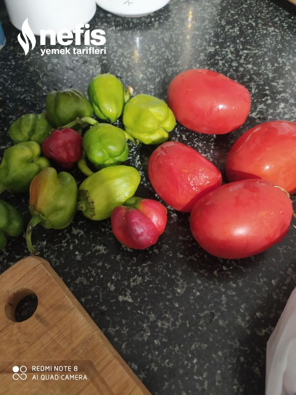 - Daha sonra biberleri ve domatesleri dilimleyelim.