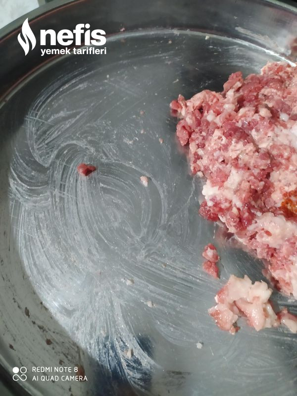 - Daha sonra harcını hazırlayalım, kıymayı ve baharatları ekleyelim.