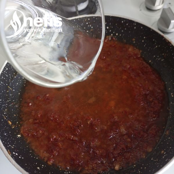 3. Daha sonra biber salçası domates salçası ve baharatları ek edip karıştıralım 1-2 dakika salçayı kavurun.
