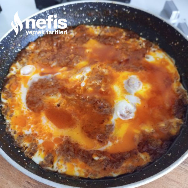 5. Bu aşamada ocağı güzelce kısığa alıp 2 adet yumurtayı soğanların üzerine çırpmadan kıralım ,tuz serpiştirip kaşıkla hafif yumurtaları dağıtalım tavanın kapağını kapatıp yumurtaları pişirelim.