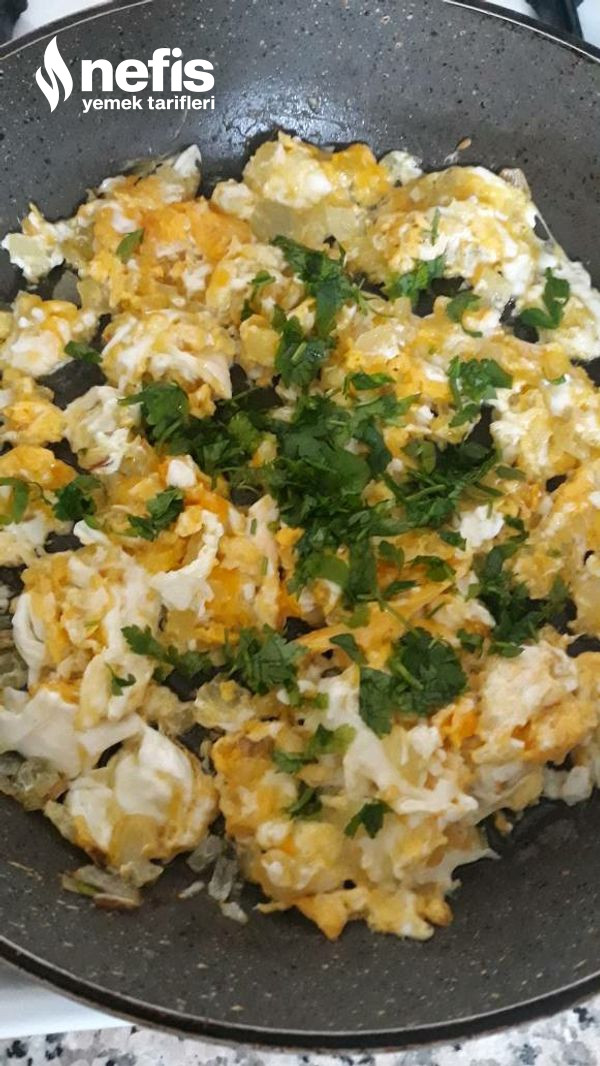 - Soğan yumuşayana kadar orta ateşte kavrulur, yumurtalar üzerine kırılır karıştırılır, tuz eklenir karıştırılır pişmeye bırakılır.