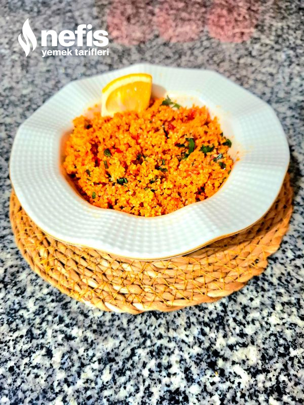 - Ardından salça karışımını kısıra ekleyip karıştıralım. Burda kimi salçalar daha az renk verdiği için kısırın rengini etkileye bilir. Ona nazaran ekleme yapabiliriz. Tekrar dinlenmeye alalım.