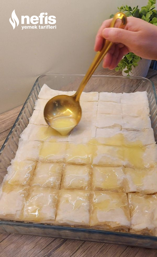 - Fındık yahut ceviz döküp her katı yağlayarak tekrar dizelim.