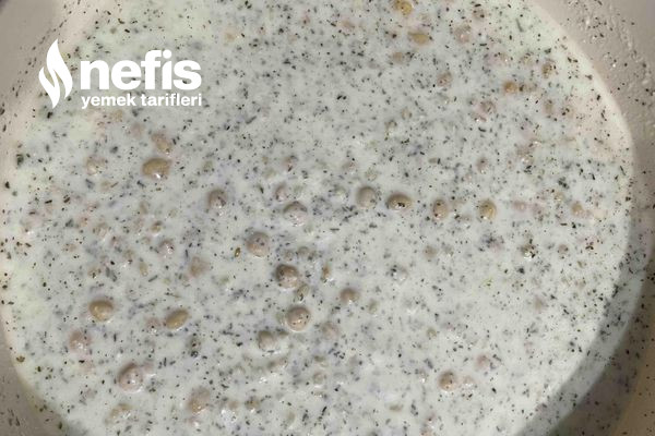 5. Yarma ve nohut haşlandıktan sonra süzüp soğuduktan sonra genişçe bir kapta yoğurdu ekliyorum hiç su koymuyorum buz küpleri kâfi oluyor.