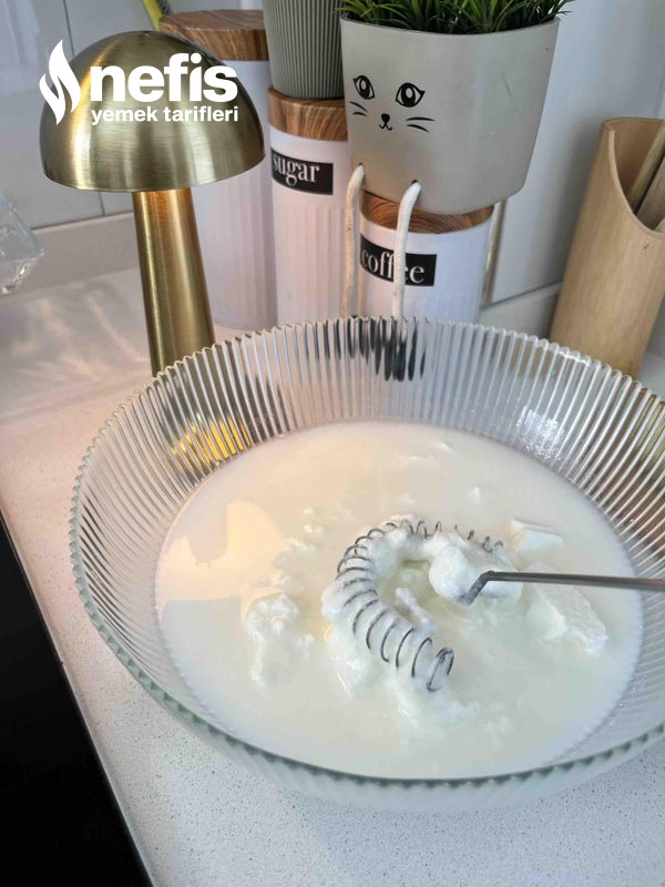 Yoğurt kesilmesin diye tüm materyaller oda sıcaklığında olmalı. Daha ağır kıvam isteyenler yoğurt-su oranını damak tadına nazaran ayarlayabilir.