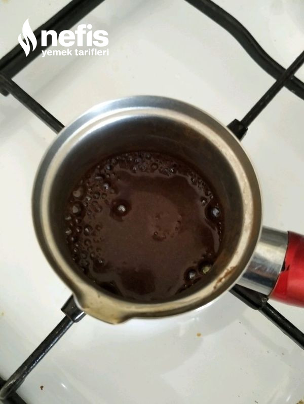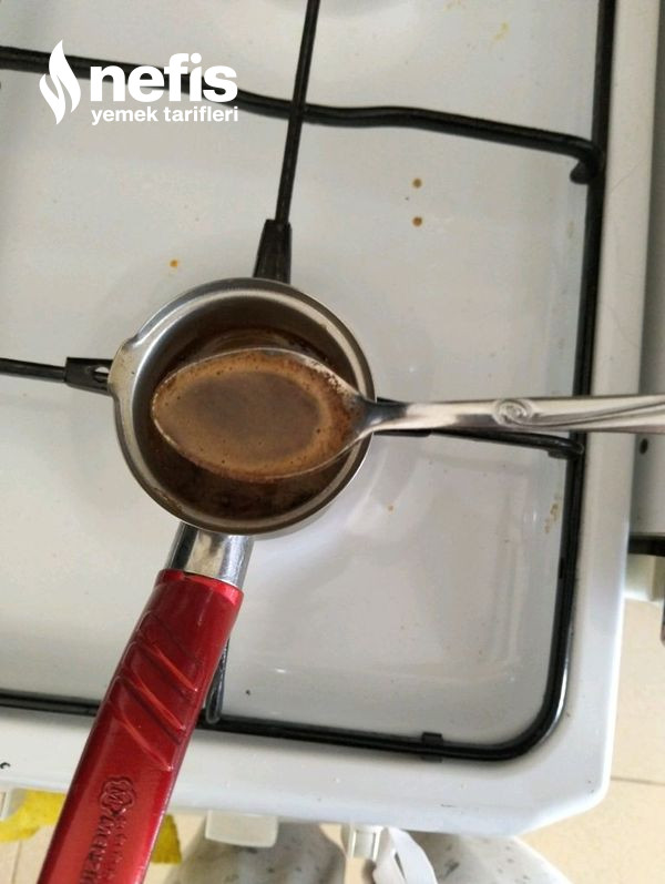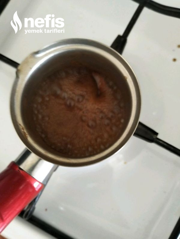 1. Kahve, su ve şekeri cezvede pişiriyoruz.