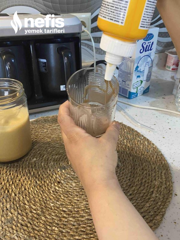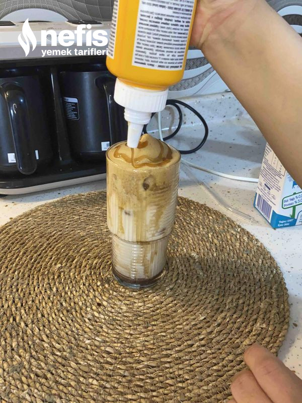 - Eklenen sütün üzerine tekrardan kahveden eklenir ve karamel sosu ile süslenir.