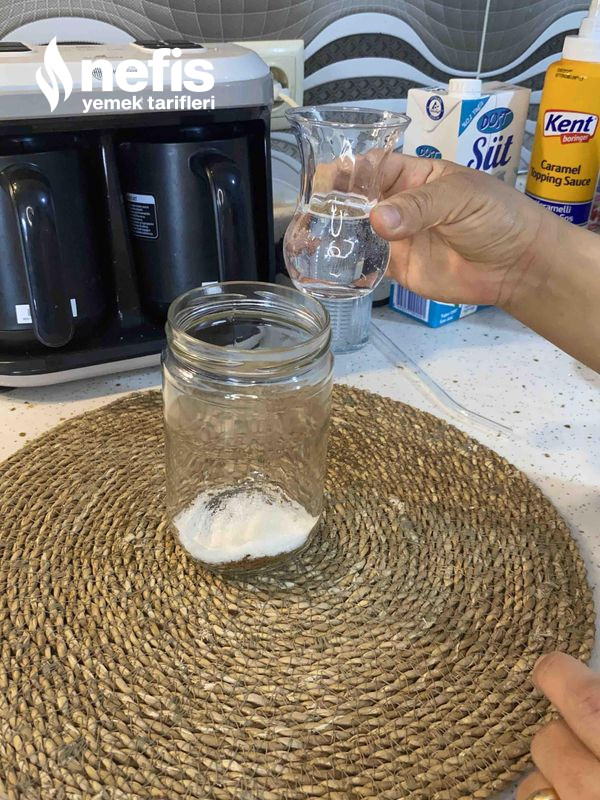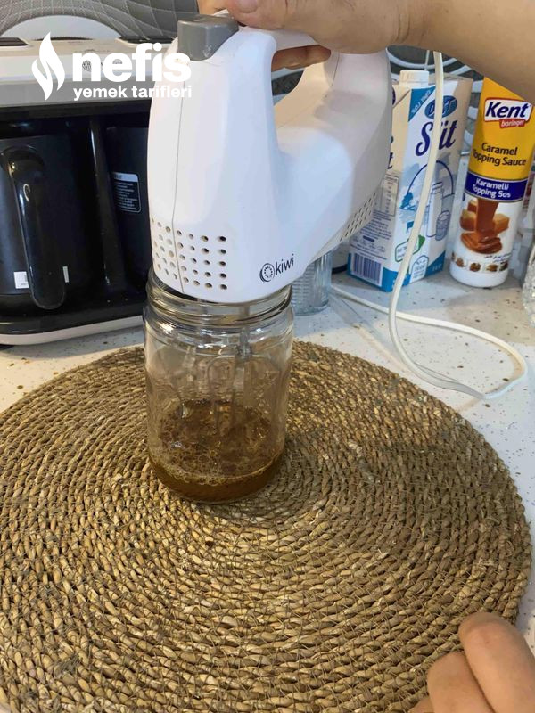 - Granül kahve şeker ve su bir kaba konulup mikser ile uygunca çırpılır köpük köpük olana kadar.