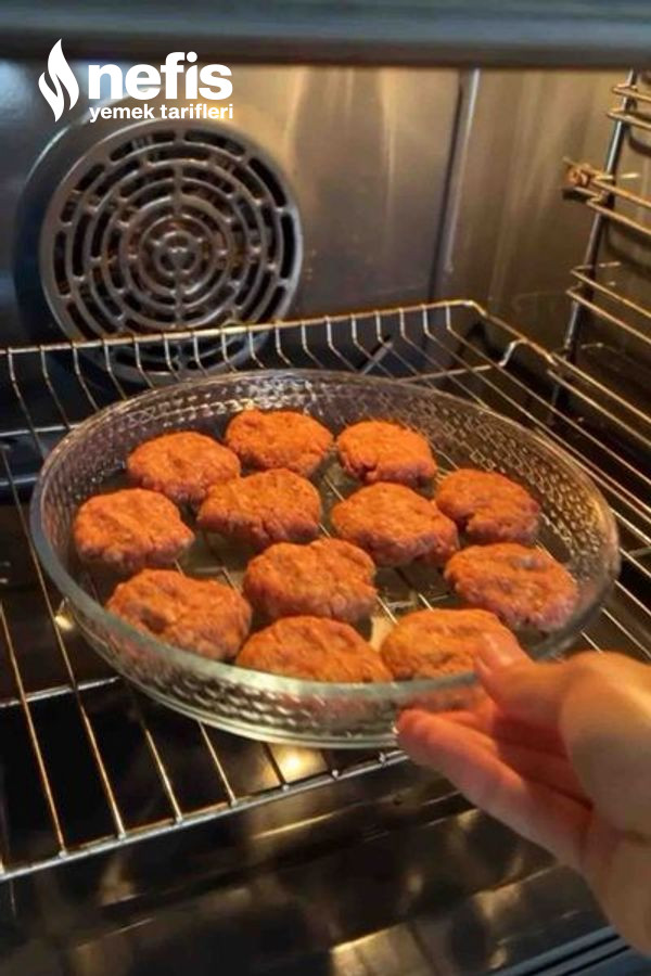 - Köfte imali için harcı dolaptan çıkarıyoruz ve elimizle form verip evvelce ısıtılmış fırında 200 derecede ortalama 20-25 dk pişiriyoruz.