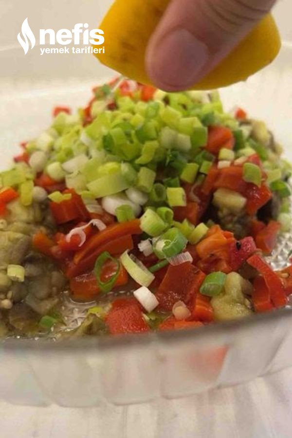 - Üzerine küçükçe doğranmış taze soğanları, limon suyunu,ezilmiş sarımsağı, zeytinyağ ve baharatlarını ekliyoruz, güzelce karıştırıyoruz.