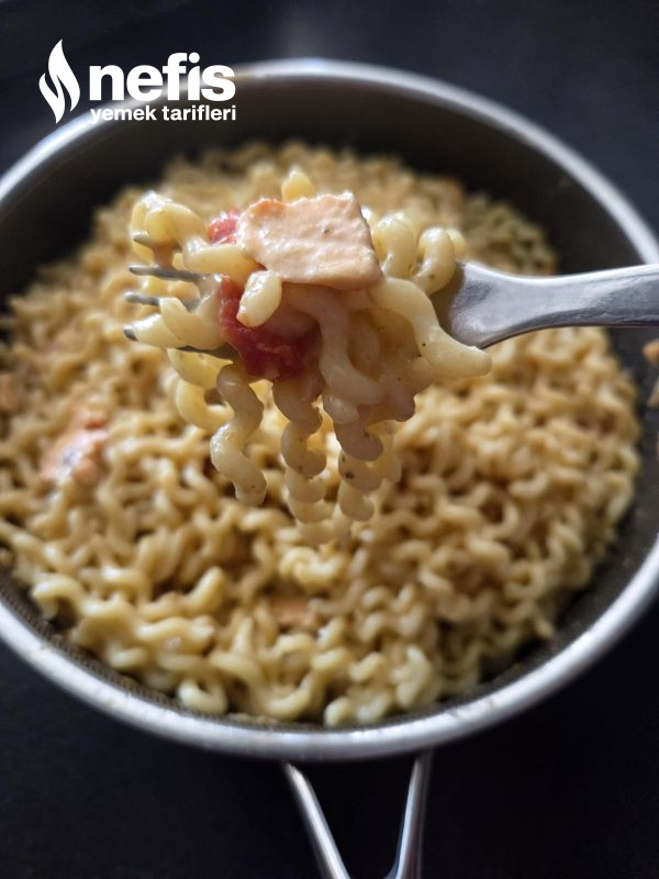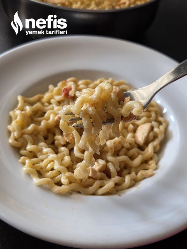 - Süzdürülen makarnayı da ek edelim sosa ve ocağı kapatıp tavayı kenara alıp makarnanın sosa düzgünce çekmesini bekleyelim ( yaklaşık 5 dakika ).