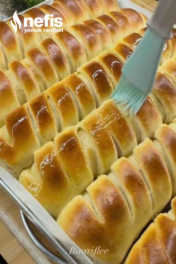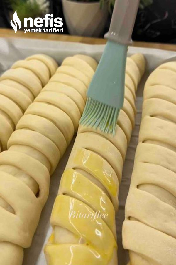 - 15-20 dakika tepside mayalanmasını bekledikten sonra üzerine yumurta süt karışımından sürüp 185 derecede evvelce ısıtılmış fırında üzeri kızarana kadar pişirelim.