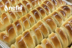 - 15-20 dakika tepside mayalanmasını bekledikten sonra üzerine yumurta süt karışımından sürüp 185 derecede evvelce ısıtılmış fırında üzeri kızarana kadar pişirelim.