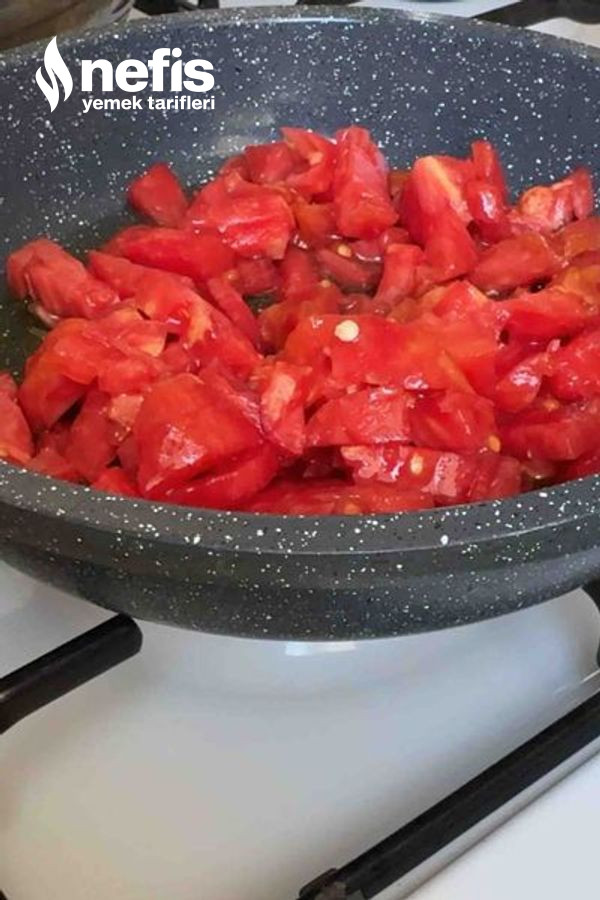 - Domatesi soyup küp küp doğrayalım bir tavada 3 yemek kaşığı yağda ezerek kavuralım.