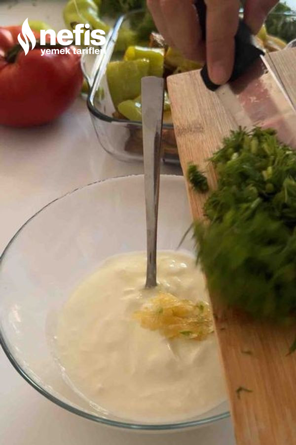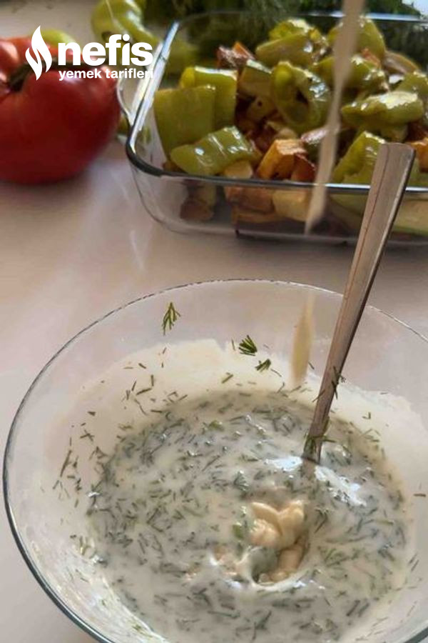 - Yoğurdu karıştırma kabına alalım, sarımsakları ezip ,tuz ve ince kıyılmış dereotunu ekleyip en son mayonezli de ekleyip karıştıralım.